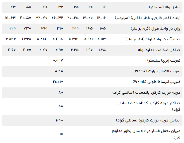 - افت فشار بسیار ناچیز به دلیل ضریب زبری بسیار کم داخل لوله
